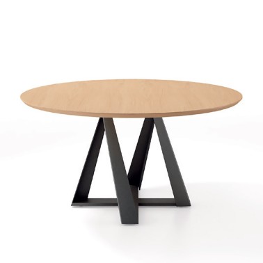 Mesa de comedor de diseño moderno con tapa en madera de roble o nogal. Faldón de madera 2,5 cm. Patas metálicas en acabado lacado del mismo...