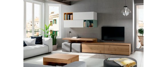 La mesa de centro marca el caracter del salón y complementa al sofá y al mueble de televisión.
